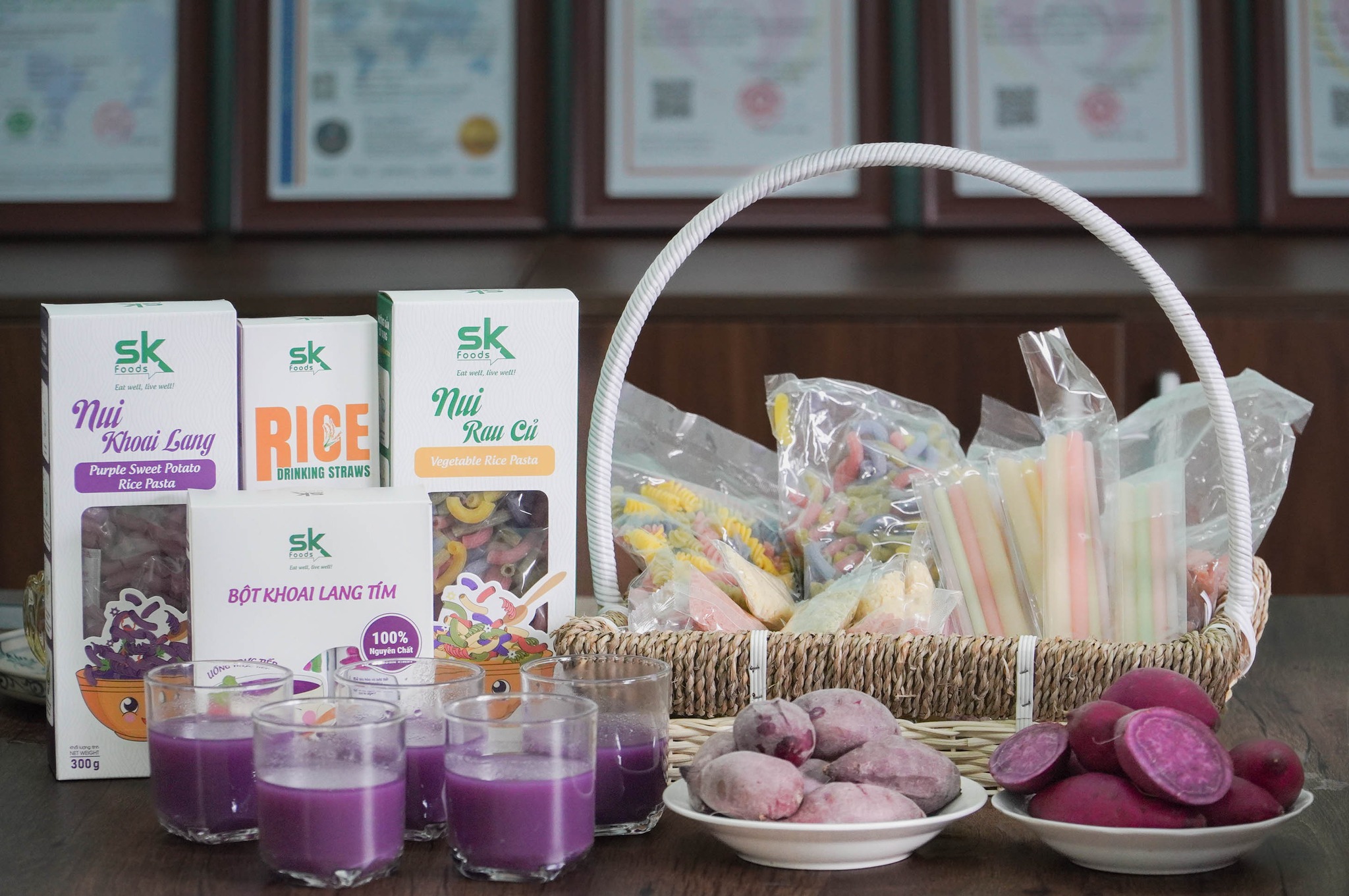 Điểm dừng chân đầu tiên là Sao Khuê Food – nơi tâm huyết được gửi gắm vào từng sản phẩm từ khoai lang tím. Thay vì chỉ nói về công nghệ, chúng tôi đã được nghe câu chuyện về loại khoai lang giàu dưỡng chất này và hành trình biến nó thành những sản phẩm tinh túy như nui, mì Ý, bột dinh dưỡng. Đặc biệt, sản phẩm ống hút gạo của Sao Khuê đã chứng minh rằng một sản phẩm thân thiện với môi trường vẫn có thể chinh phục những yêu cầu khắt khe của các resort cao cấp. Đó là câu chuyện của chất lượng và niềm tin.