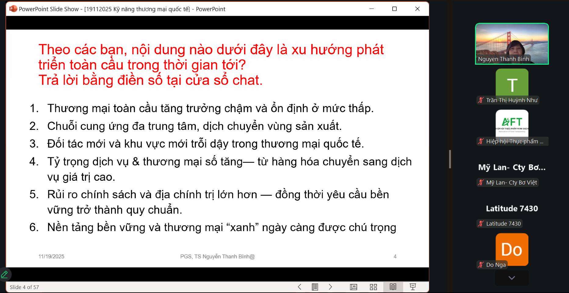 Trong bối cảnh thương mại toàn cầu biến động mạnh, doanh nghiệp Việt Nam không chỉ cần sản phẩm tốt mà còn phải sở hữu tư duy xuất khẩu đúng, chủ động và thích ứng. Buổi đào tạo “Kỹ năng Thương mại Quốc tế” do AFT tổ chức đã mang đến cho doanh nghiệp những góc nhìn thực tế về xu hướng dịch chuyển toàn cầu và cách SME Việt Nam có thể bước ra thị trường quốc tế một cách chuẩn mực.